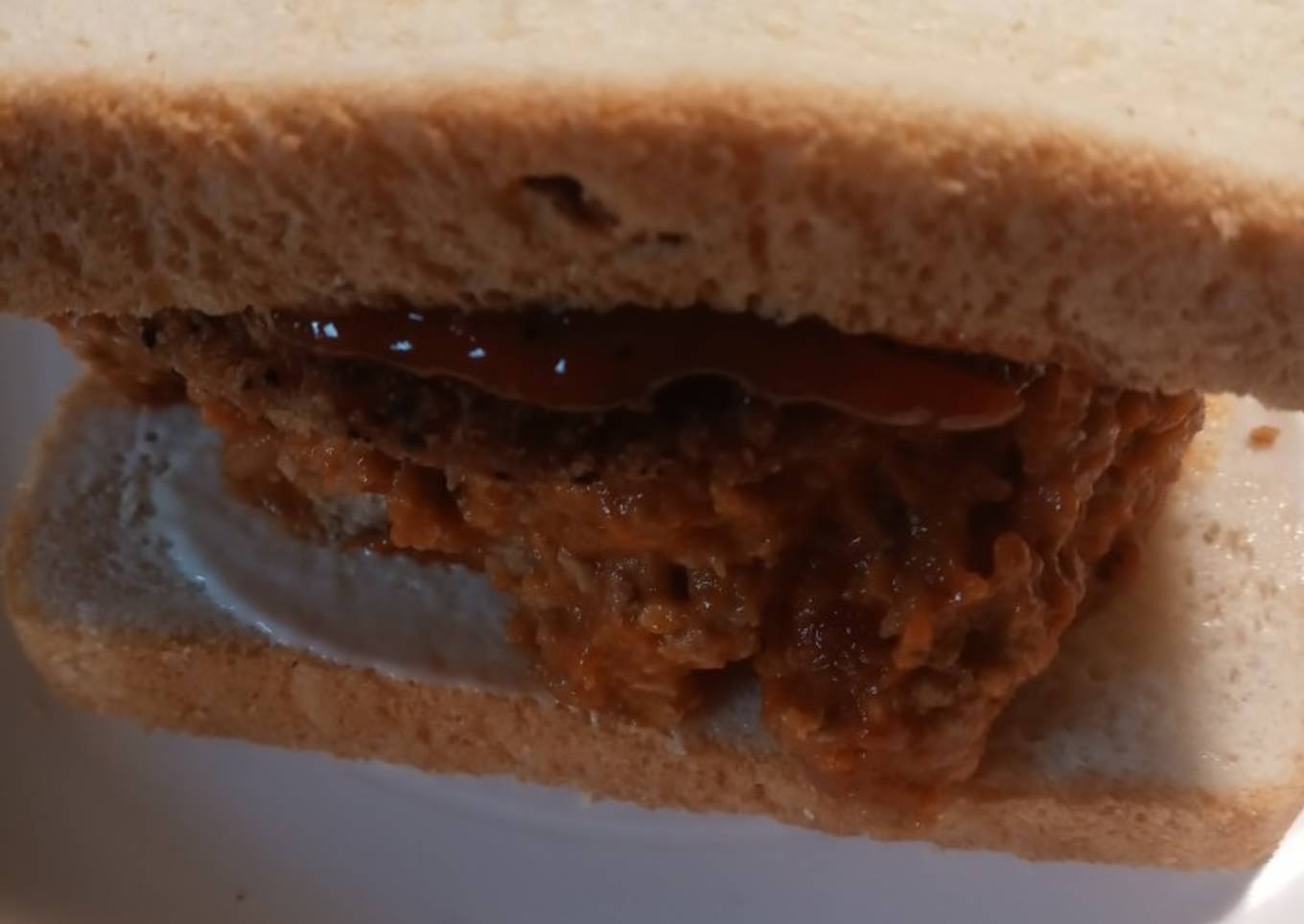 - Heat the chicken and sloppy Joe meat mixture. Add mayonnaise to two slices of bread add everything to sandwich.