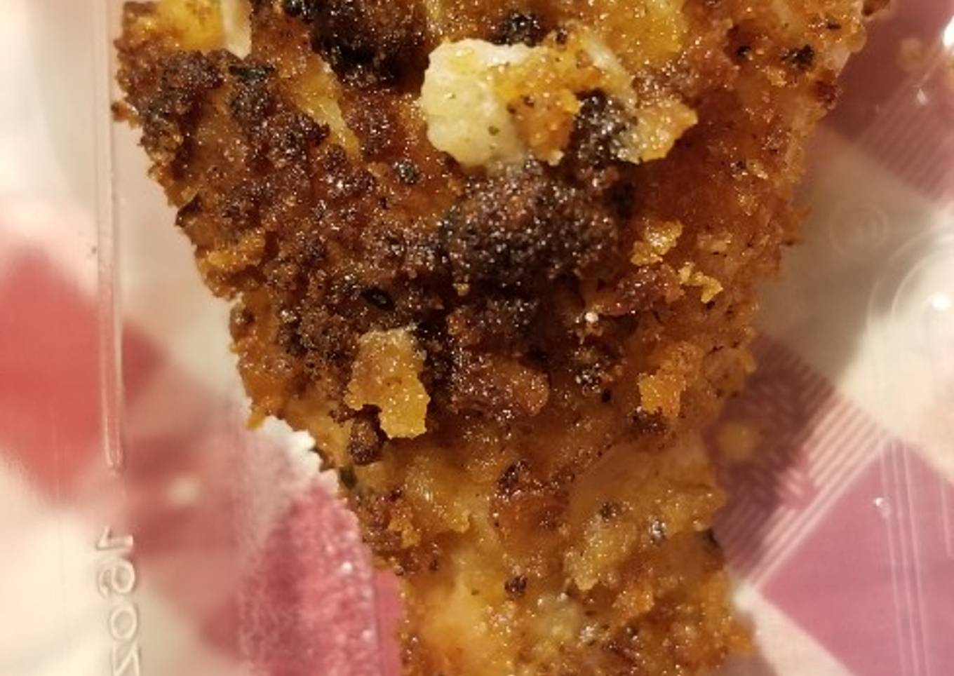 - Tips: I made bread crumbs out of crushed croutons and crackers because that's what I had available. My family loved it! Also, my chicken wasn't completely done after 45 minutes, so I put it in the broiler for 10 additional minutes, and it came out perfectly. 😋