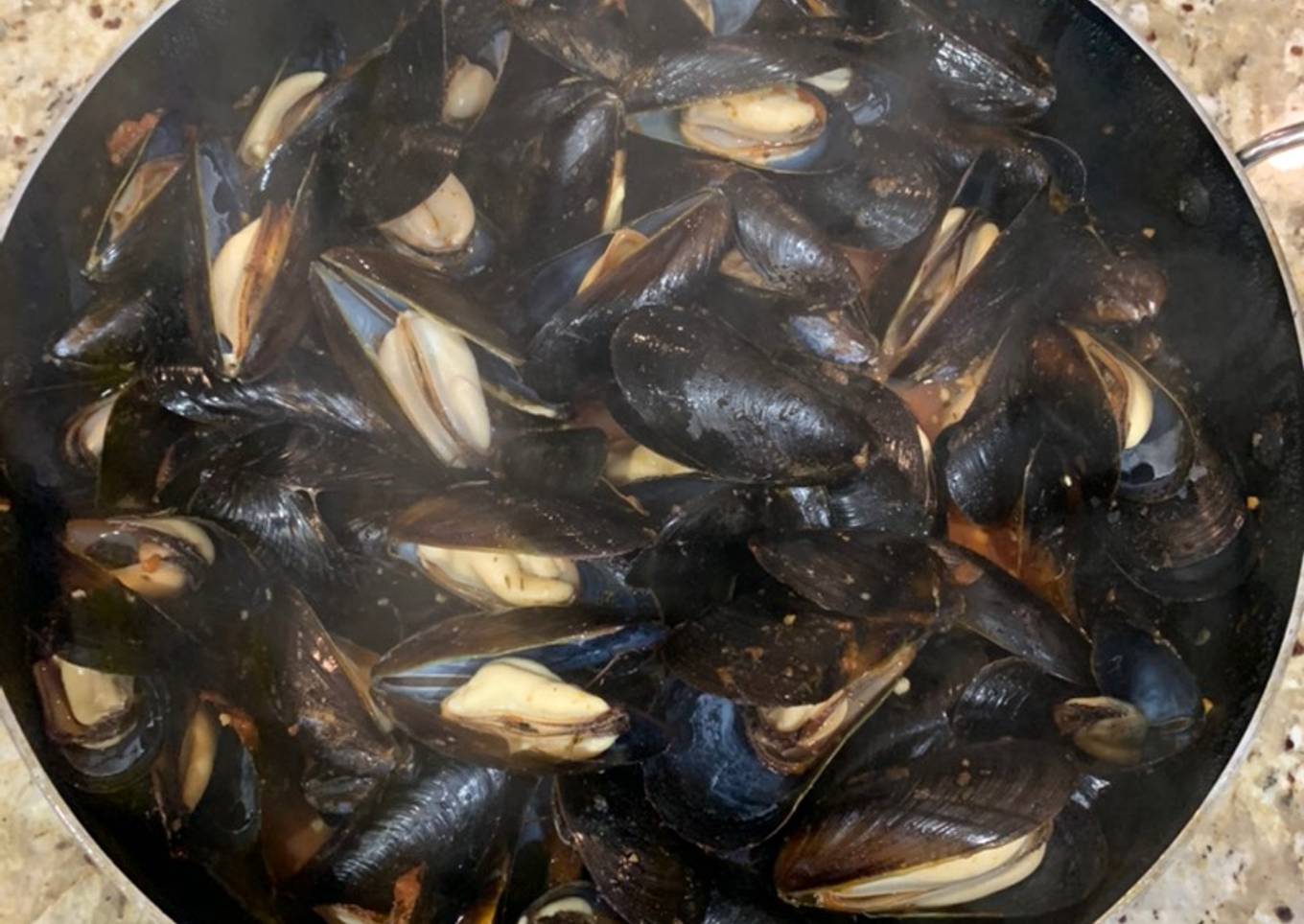 - Add mussels and simmer until all shells are open. (Discard any shells that aren’t open.)