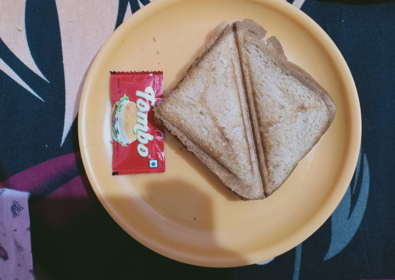 - Take a a slice of bread and spread the material on bread..and saked in toasted machine and serve it..